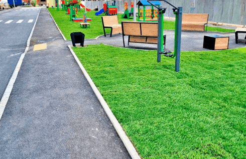Дети могут играть на свежей зелени сразу после укладки, а родители — не беспокоиться о грязи или сложном уходе.