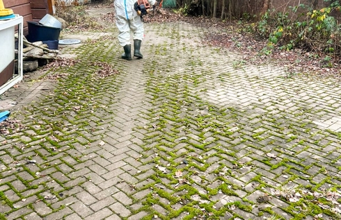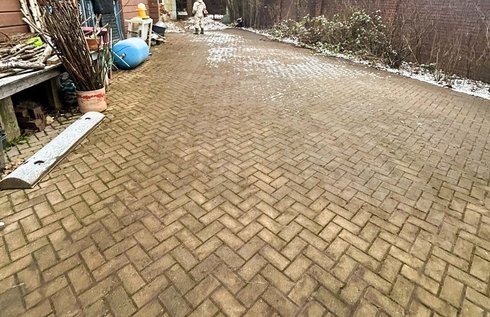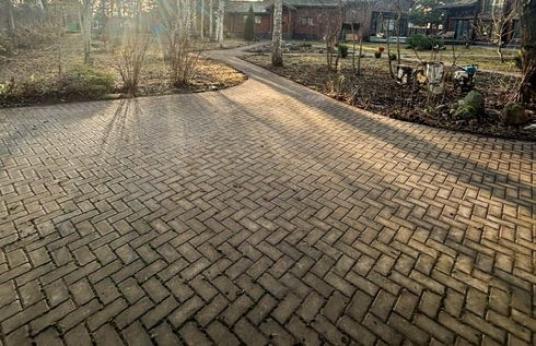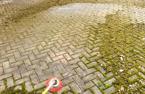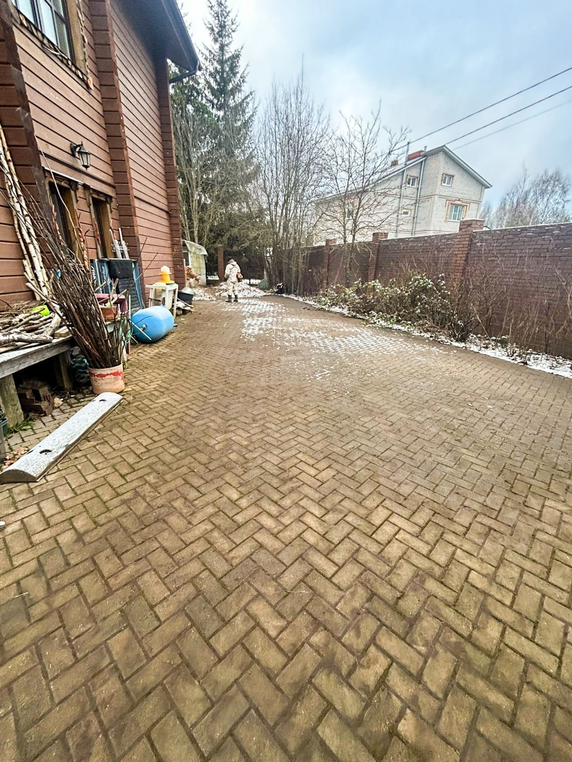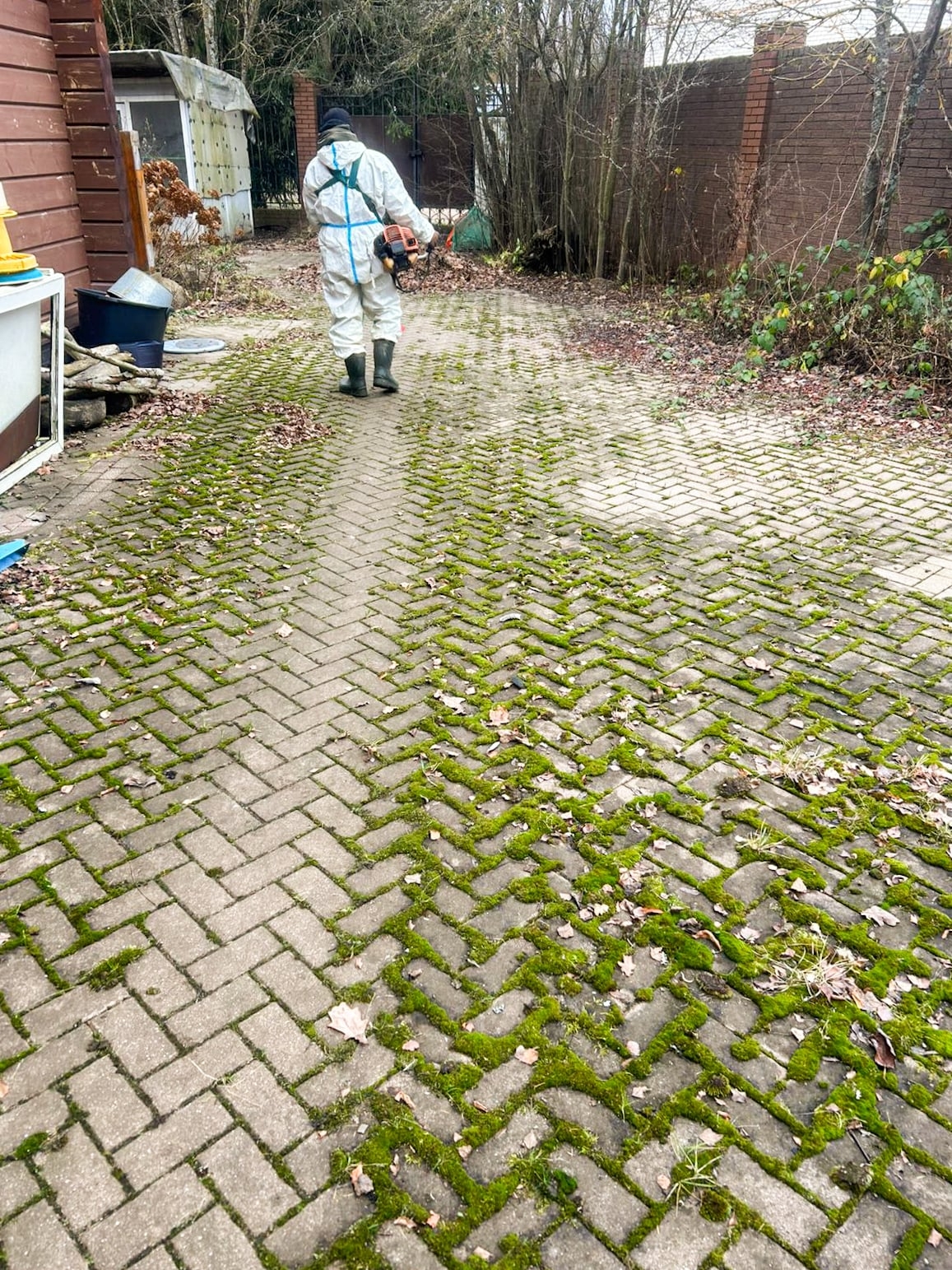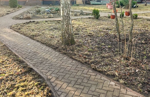 - Очистили брусчатку — убрали грязь, песок и траву из швов.