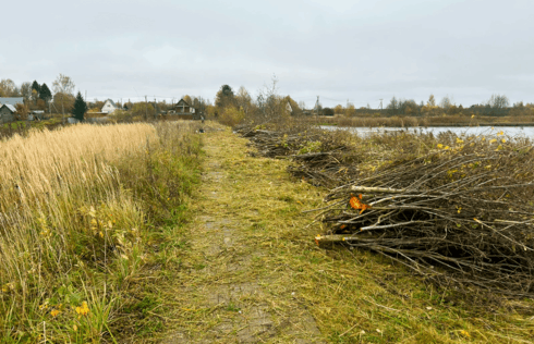 Комплексные масштабные работы по уходу за прибрежной зоной и пешеходным маршрутом: выполнили вырубку и опиловку разросшихся кустарников и деревьев, покос травы, тщательно убрали весь образовавшийся мусор. Теперь территория вокруг дорожки, водоема и мостика выглядит аккуратно, обеспечивая комфорт и безопасность для жителей.