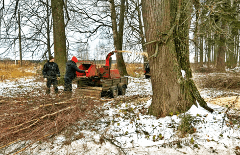 Использовали современное оборудование: от бензопил до измельчителя, который превратил ветки и стволы в аккуратную щепу — идеально для мульчирования или утилизации.