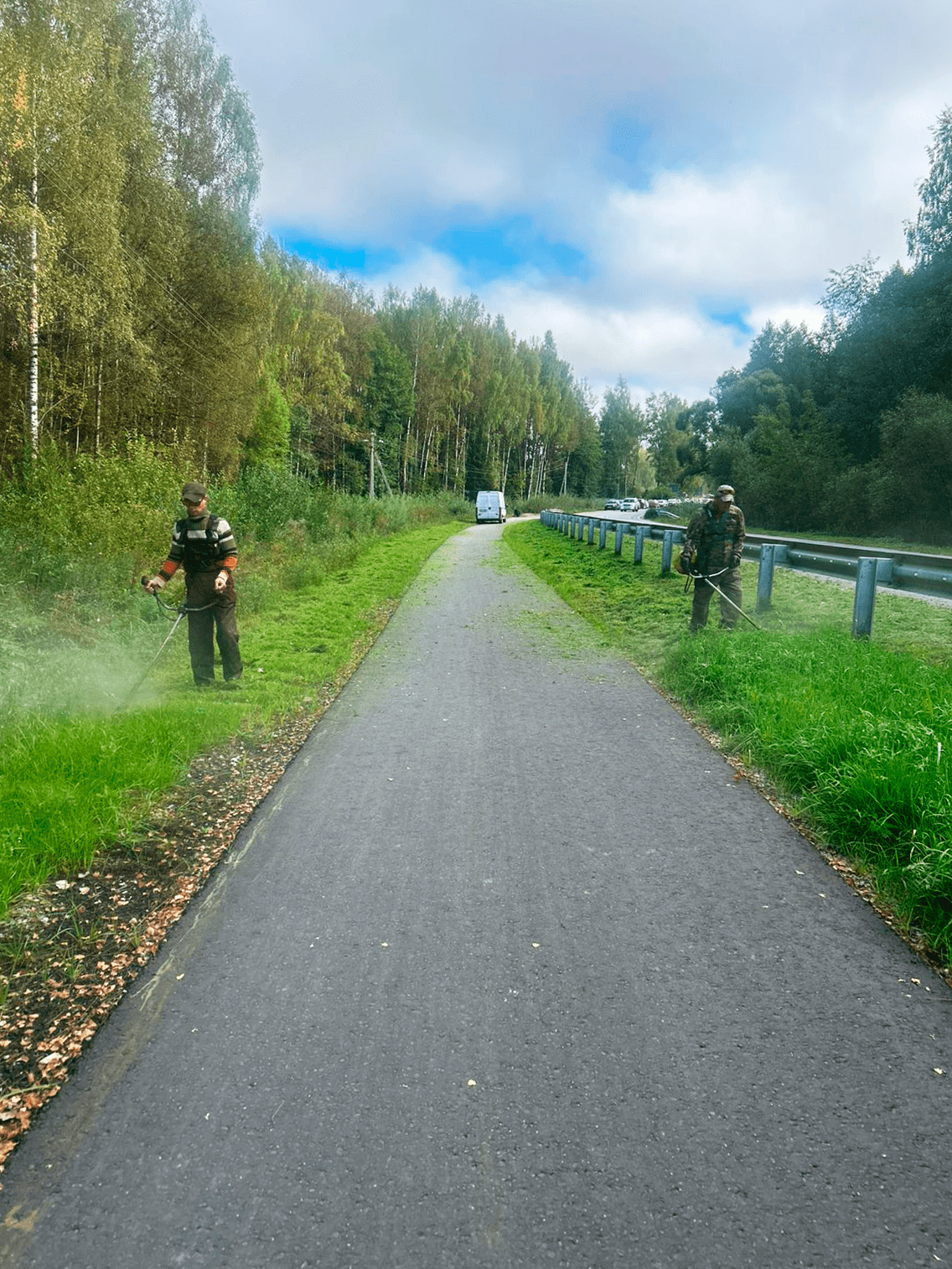За 4 дня мы скосили траву на 22 километрах дорожки — велосипедисты могут спокойно наслаждаться комфортом и свободой движения.